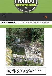 Une orandonnée à la découverte de Cherveux avec son Temple, son château, un puits et l'escalier de Ripe-Cul, la pompe du Plan (1880), un cadran solaire (1836). Sur le parcours quelques cimetières familiaux, le lavoir de Trousse Chemise, la vallée du Mousson, l'ancien moulin à vent de la Truite, le plan d'eau de Cherveux - Saint-Christophe, des châtaigniers centenaires et le Logis de Seneuil